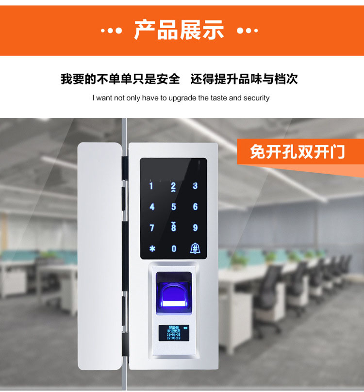 玻璃門指紋鎖密碼刷卡鎖免開(kāi)孔、門禁系統(tǒng)帶遙控支持微信遠(yuǎn)程開(kāi)門